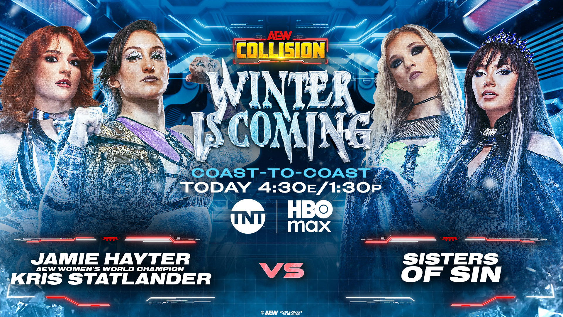 AEW presents a special international Winter is Coming Collision from Wales. Mark Briscoe defends his TNT Title against Daniel Garcia. Kris Statlander and Jamie Hayter battle the Sisters of Sin. Takeshita faces Castagnoli in Continental Classic competition. Swerve Strickland returns to singles action against Josh Alexander.