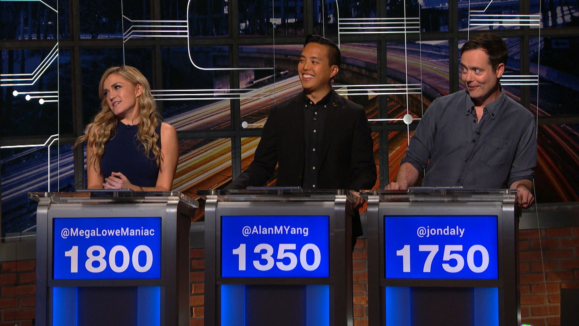Tonight's guests are Jessica Lowe, Alan Yang, Jon Daly.