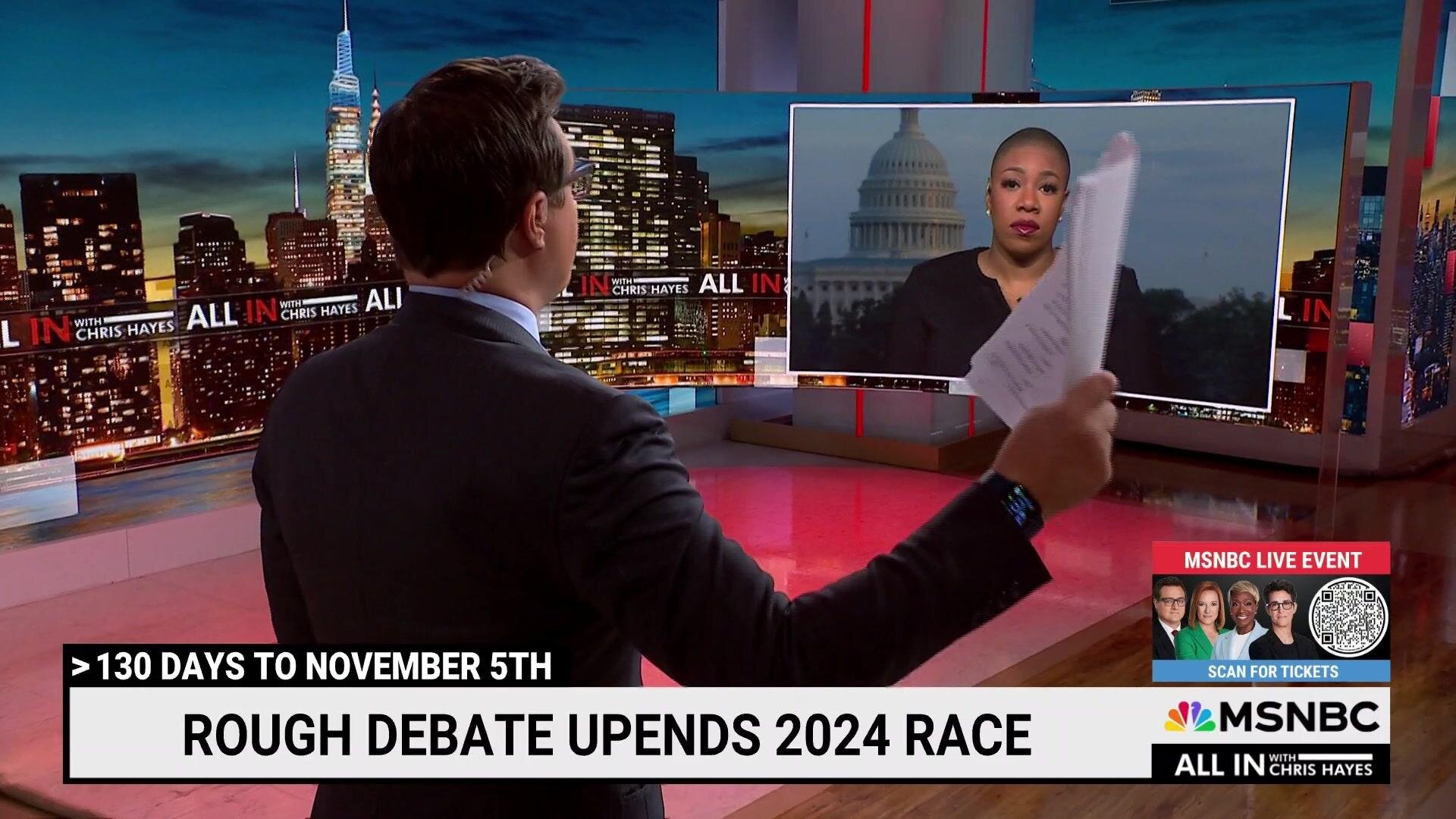 Guests: Symone Sanders-Townsend, Douglas Brinkley, Ezra Klein, Dahlia LithwickAbout last night, through the eyes of the undecided. Tonight: how gettable voters viewed the debate—and what it means for the existential threat of a Trump presidency. Plus, as Barack Obama enters the conversation, the historical precedent and practical reality of picking a candidate at the convention. And today's radical opinion from the Supreme Court as we finally get word that a decision on Trump's immunity for insurrection is finally up next.