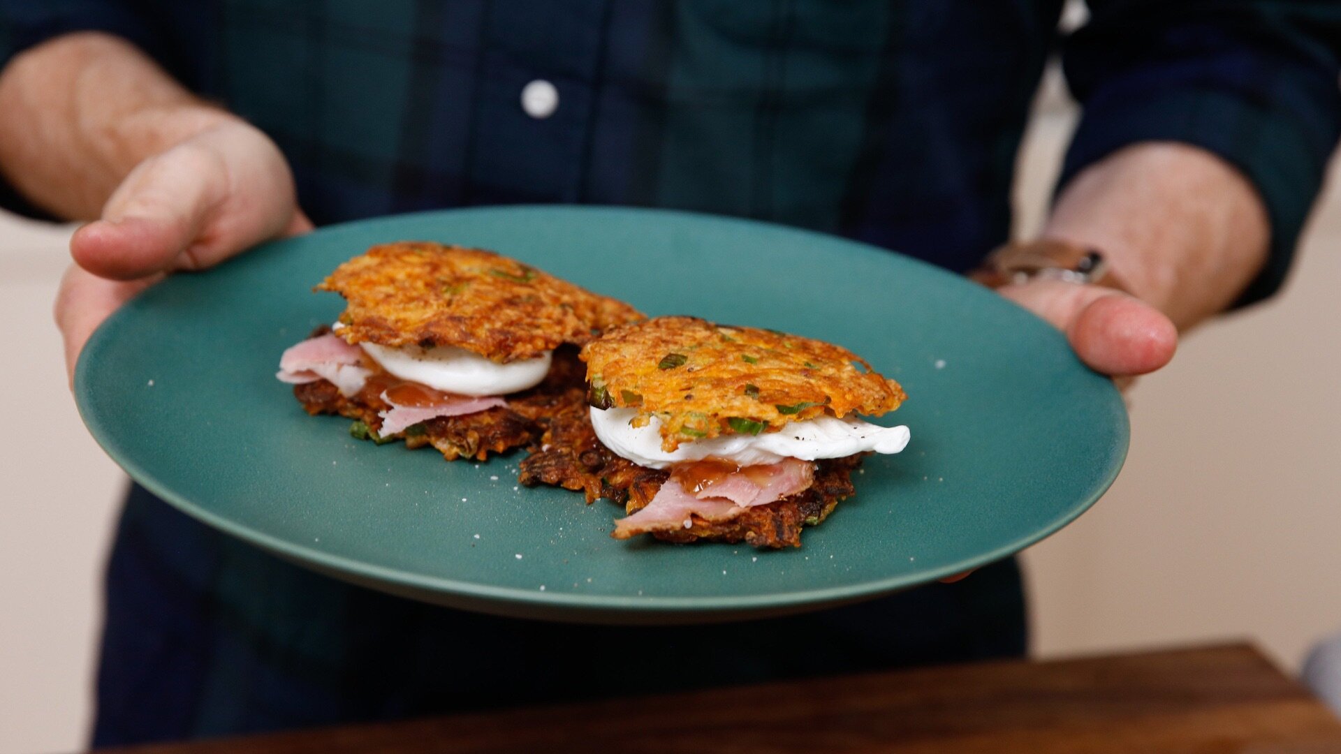 With only a few things left in the pantry and a fridge full of leftovers, Bobby Flay makes a post-holiday brunch featuring a Gingerbread Dutch Baby with Poached Maple Pears and Creme Fraiche, a Sweet Potato Green Onion Pancake with Holiday Ham and Pepper Jam and Grapefruit Sparkle cocktail.