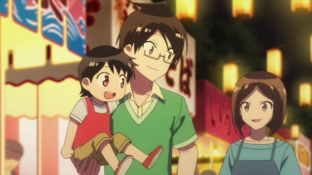 When Nariyuki goes to a festival, he runs into Uruka and strolls with her past the food stalls, helps Rizu deliver food, and takes an injured Mafuyu to Asumi's father's first-aid tent. In other words, as ever, he's a busy do-gooder.