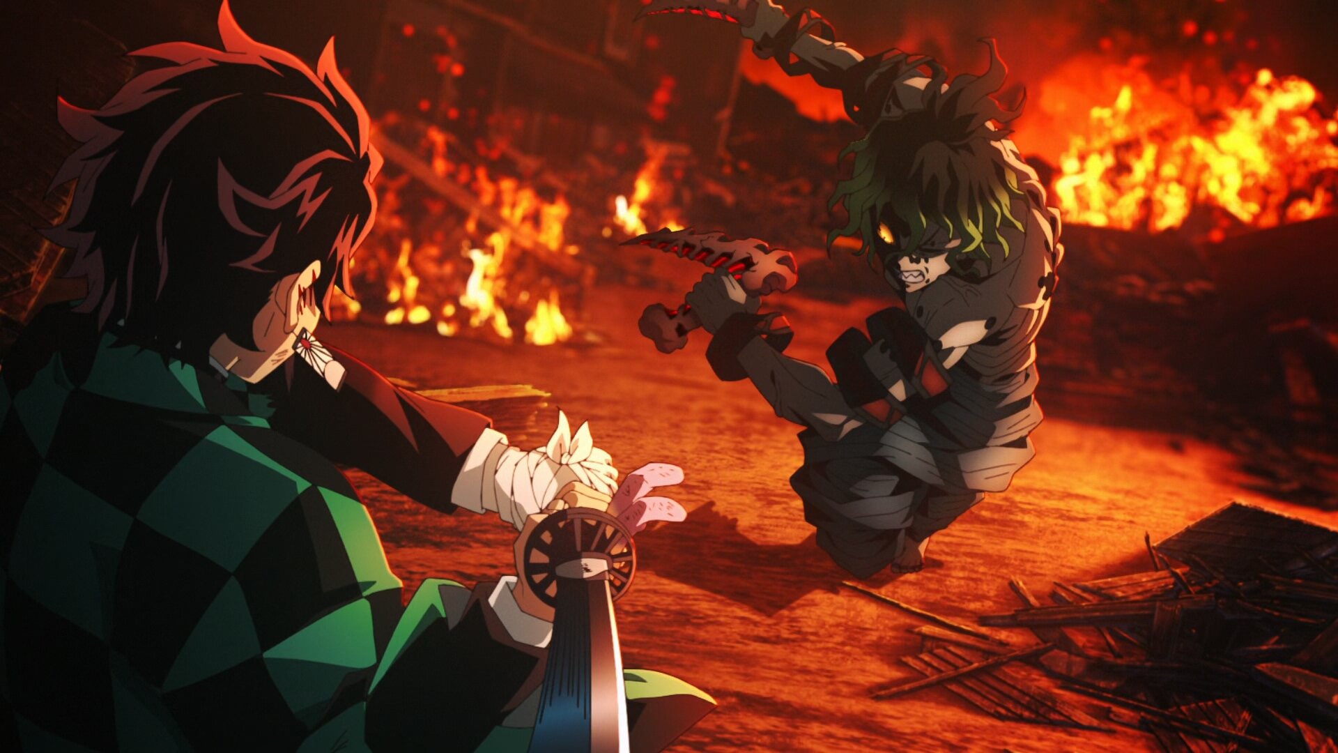 Amid the wreckage from the buildings destroyed by the destructive attacks of Daki's Belt, Tanjiro awakens. Zenitsu is trapped under the rubble and Inosuke has been impaled by Gyutaro's scythe, while Uzui has lost an arm and his heart has stopped. As Gyutaro taunts Tanjiro by calling him a disgrace, all seems hopeless until...