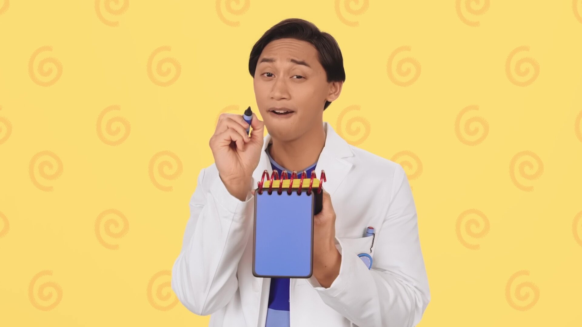 Josh and Blue are pretending to be doctors around the house, giving silly checkups to friends, but one 'patient' seems to have a curious condition!
