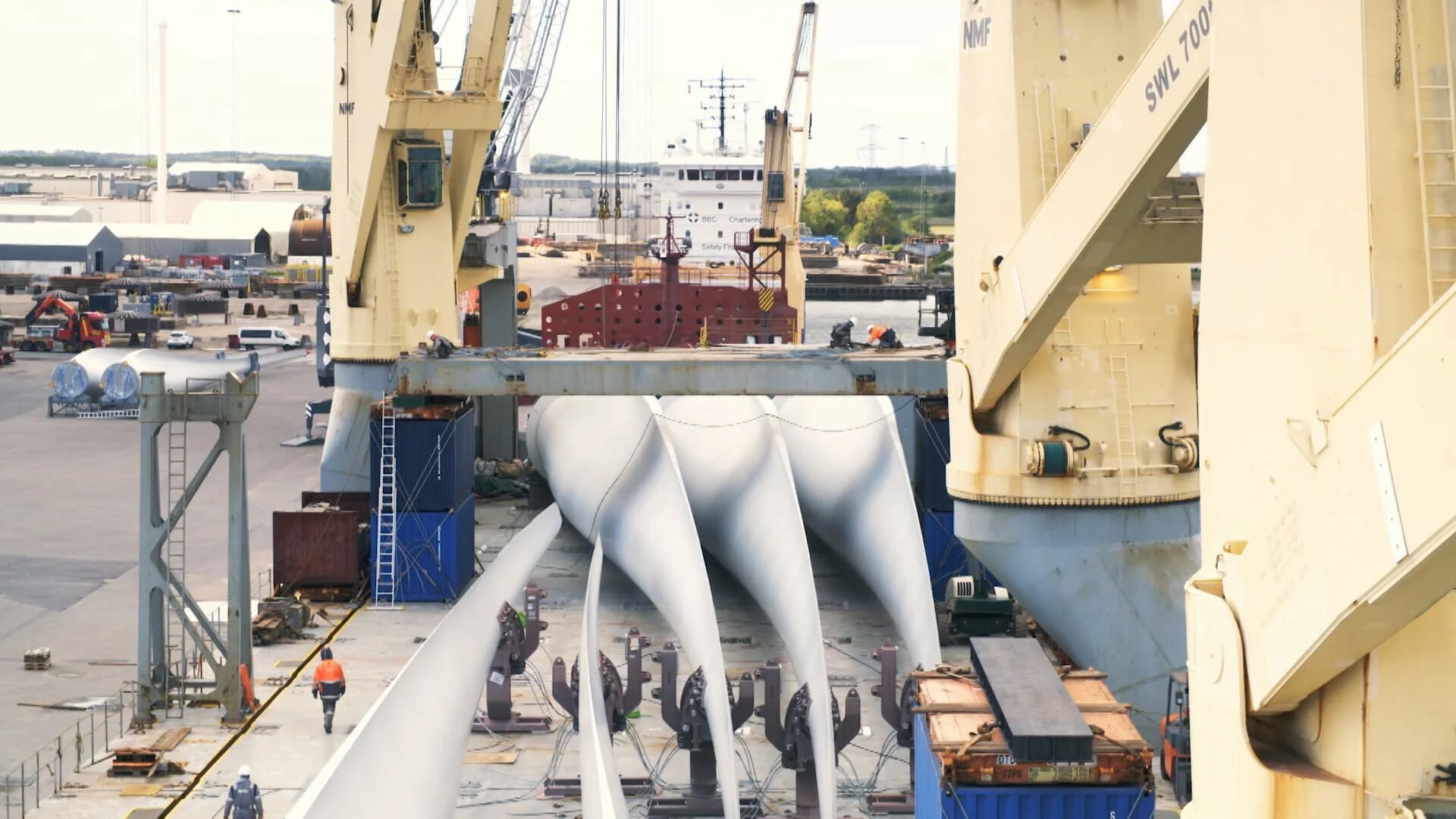 Climb aboard one of the world's largest heavy lift vessels as it transports a 2,000-ton wind park from Europe to Asia.
