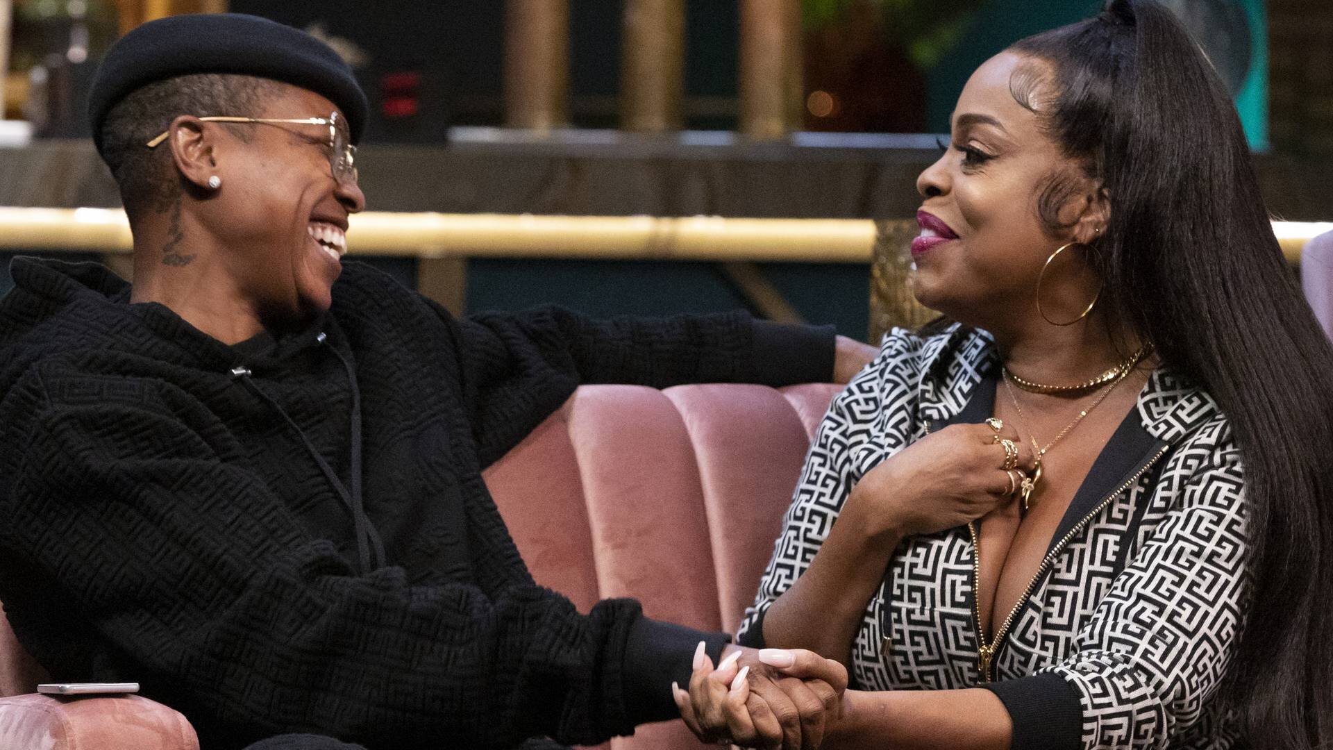 Stephen braces himself – and covers his ears – as his sister Sydel and brother-in-law/Golden State teammate Damion Lee reveal surprising truths about one another to defeat opponents Casey Wilson, David Caspe, Niecy Nash, and Jessica Betts.